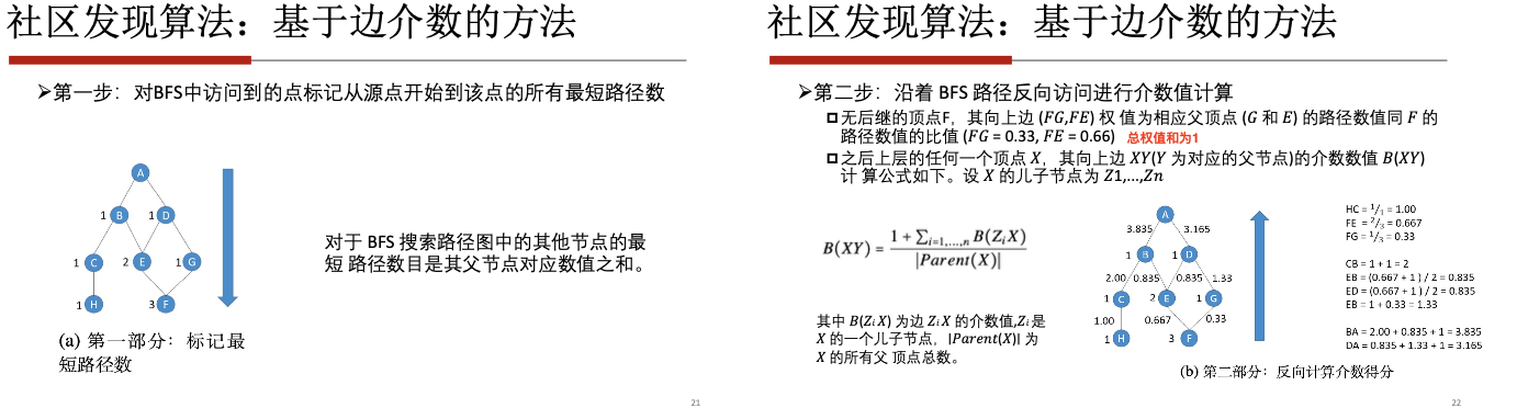 - 如果剩余所有边的介数都低于一定阈值则终止,否则回到步骤二