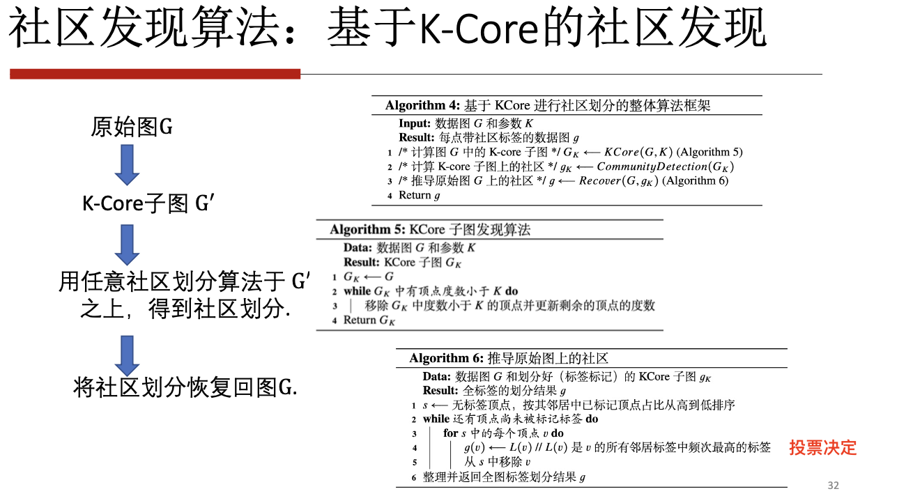 k-core算法:子图是连通的,且每个节点的度数均不小于k。