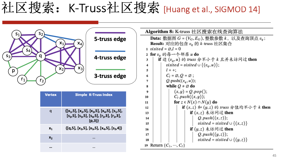 K-Truss算法:K-Truss要求子图H中任意一条边都被包含在至少(k-2)个不同的三角形中。